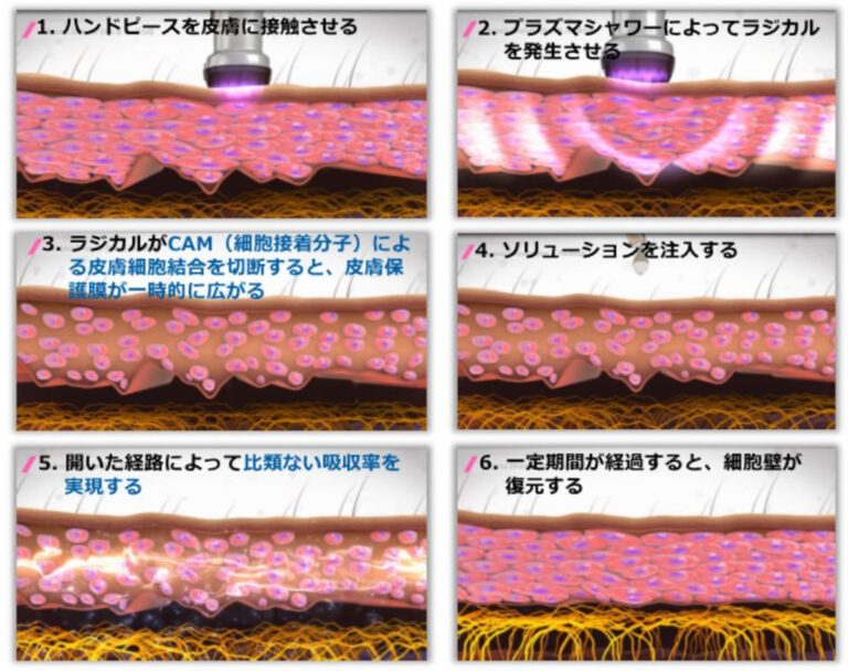 プラズマ波を頭皮に当て、細胞間に隙間を空けることにより、育毛剤(セクレトーム)を痛みなく頭皮に薬液を浸透させます。麻酔は不要です。